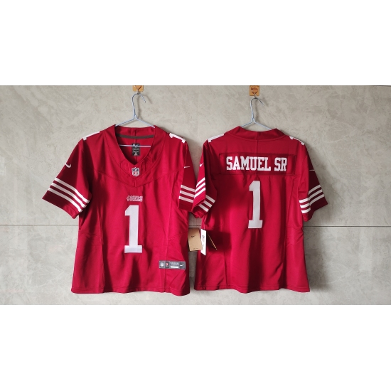 >Women's San Francisco 49ers #1 Deebo Samuel Sr. Red F.U.S.E Vapor Untouchable Stitched Jersey(Run Small)