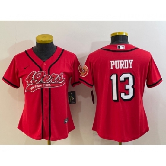 >Women's San Francisco 49ers #13 Brock Purdy Red Color Rush With Patch Cool Base Stitched Baseball Jersey