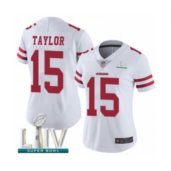 >Women's San Francisco 49ers #15 Trent Taylor White Vapor Untouchable Limited Player Super Bowl LIV Bound Football Jersey