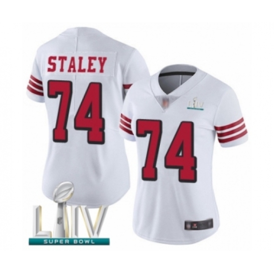 Women's San Francisco 49ers #74 Joe Staley Limited White Rush Vapor Untouchable Super Bowl LIV Bound Football Jersey