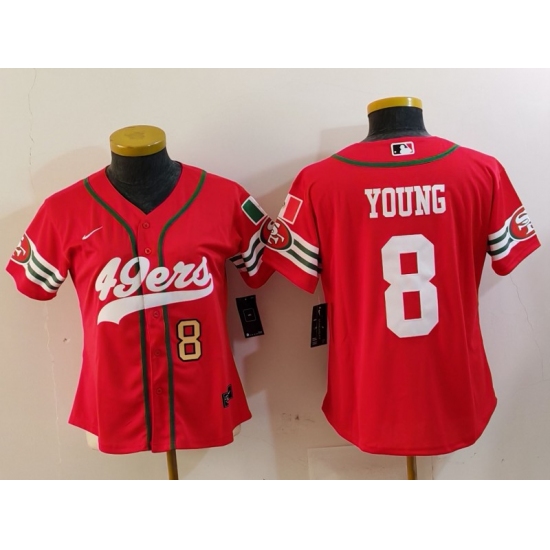 Women's San Francisco 49ers #8 Steve Young Red Mexico Cool Base Stitched Baseball Jersey