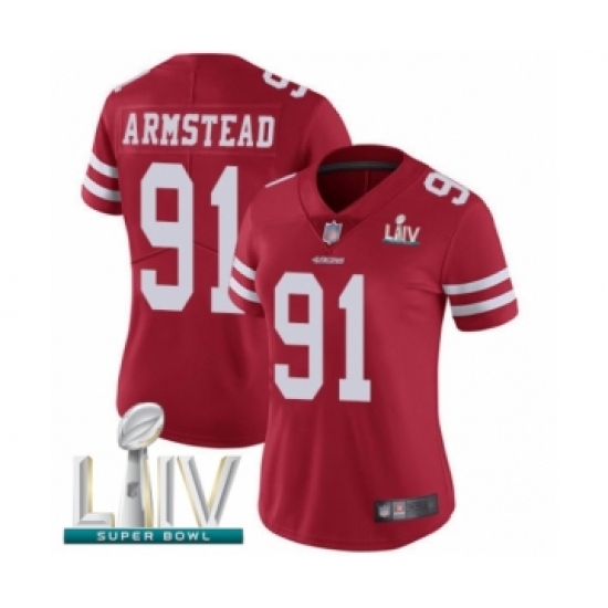 >Women's San Francisco 49ers #91 Arik Armstead Red Team Color Vapor Untouchable Limited Player Super Bowl LIV Bound Football Jersey