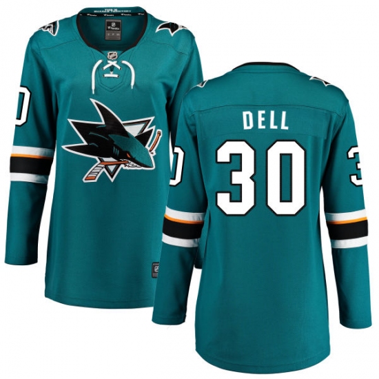 Home>NHL>San Jose Sharks>Aaron Dell>Women's San Jose Sharks #30 Aaron Dell Fanatics Branded Teal Green Home Breakaway NHL Jersey