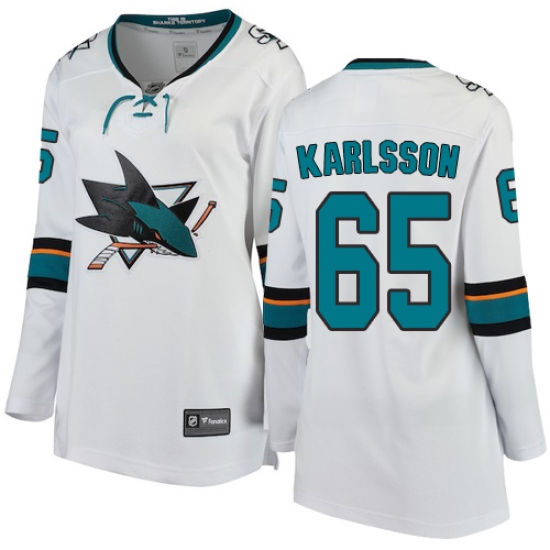 Women's San Jose Sharks #65 Erik Karlsson Fanatics Branded White Away Breakaway NHL Jersey