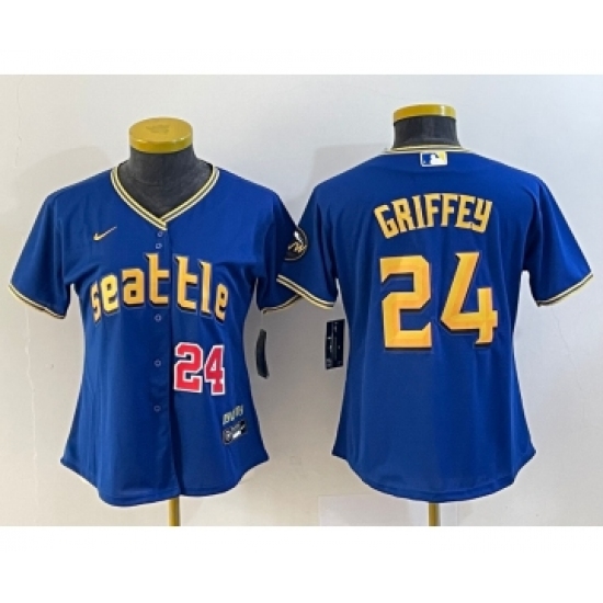 Women's Seattle Mariners #24 Ken Griffey Number Blue 2023 City Connect Cool Base Stitched Jersey