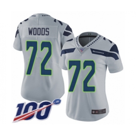 >Women's Seattle Seahawks #72 Al Woods Grey Alternate Vapor Untouchable Limited Player 100th Season Football Jersey