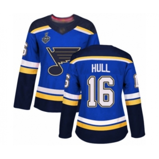 Women's St. Louis Blues #16 Brett Hull Authentic Royal Blue Home 2019 Stanley Cup Final Bound Hockey Jersey