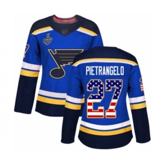 Women's St. Louis Blues #27 Alex Pietrangelo Authentic Blue USA Flag Fashion 2019 Stanley Cup Final Bound Hockey Jersey