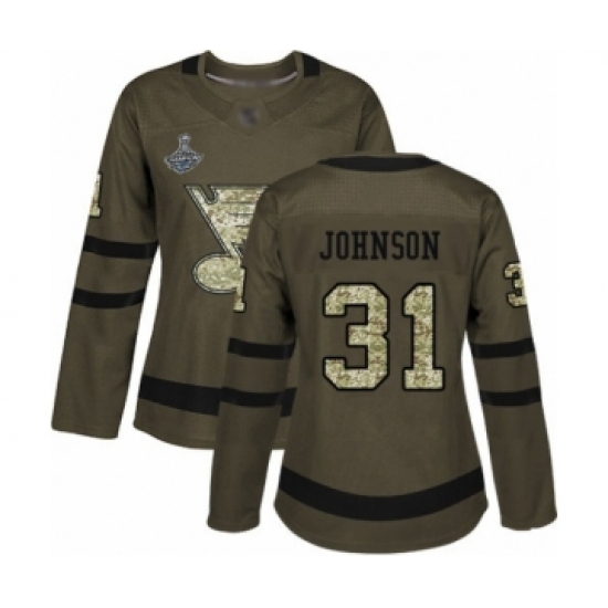 Women's St. Louis Blues #31 Chad Johnson Authentic Green Salute to Service 2019 Stanley Cup Champions Hockey Jersey