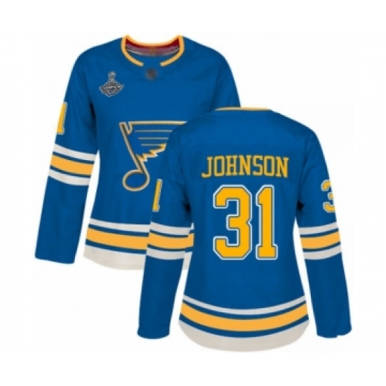 >Women's St. Louis Blues #31 Chad Johnson Authentic Navy Blue Alternate 2019 Stanley Cup Champions Hockey Jersey