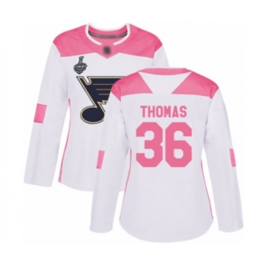 Women's St. Louis Blues #36 Robert Thomas Authentic White Pink Fashion 2019 Stanley Cup Final Bound Hockey Jersey