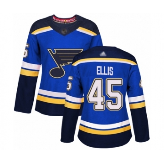 Women's St. Louis Blues #45 Colten Ellis Authentic Royal Blue Home Hockey Jersey