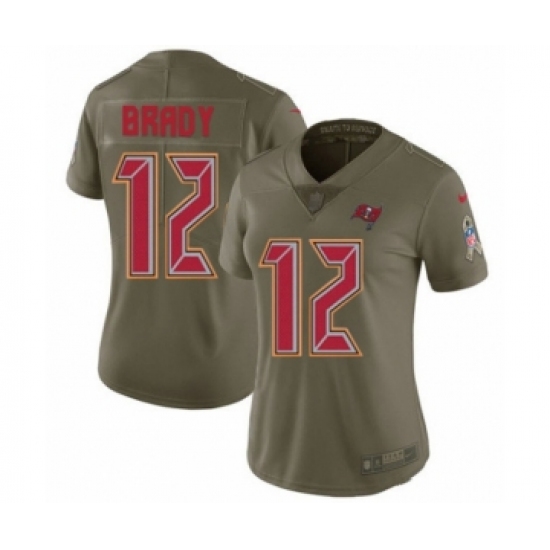 >Women's Tampa Bay Buccaneers #12 Tom Brady Limited Olive 2017 Salute to Service Football Jersey