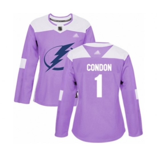 Women's Tampa Bay Lightning #1 Mike Condon Authentic Purple Fights Cancer Practice Hockey Jersey