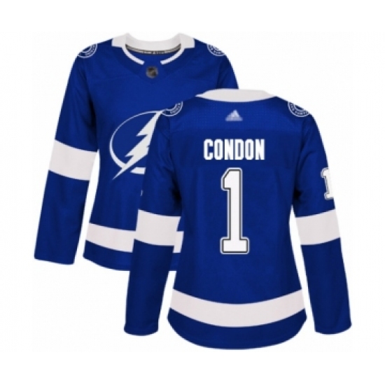 Women's Tampa Bay Lightning #1 Mike Condon Authentic Royal Blue Home Hockey Jersey