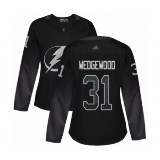 >Women's Tampa Bay Lightning #31 Scott Wedgewood Authentic Black Alternate Hockey Jersey