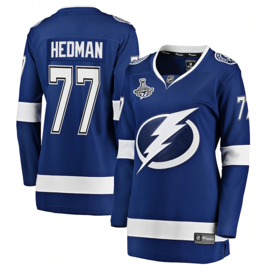 Women's Tampa Bay Lightning #77 Victor Hedman Fanatics Branded Blue Home 2020 Stanley Cup Champions Breakaway Jersey