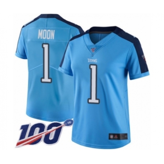 >Women's Tennessee Titans #1 Warren Moon Limited Light Blue Rush Vapor Untouchable 100th Season Football Jersey