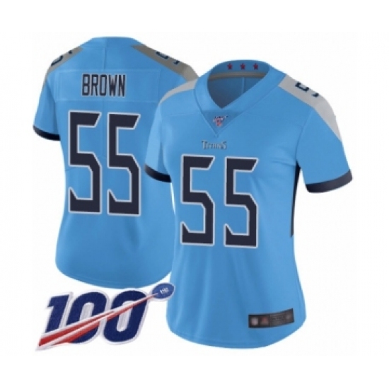 Women's Tennessee Titans #55 Jayon Brown Light Blue Alternate Vapor Untouchable Limited Player 100th Season Football Jersey