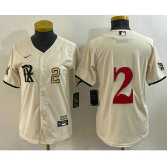 Women's Texas Rangers #2 Marcus Semien Cream 2023 City Connect Stitched Baseball Jersey