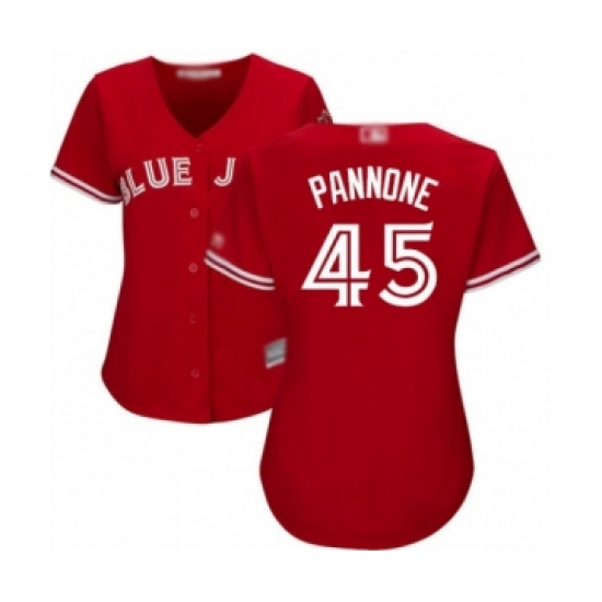 Women's Toronto Blue Jays #45 Thomas Pannone Authentic Scarlet Alternate Baseball Player Jersey