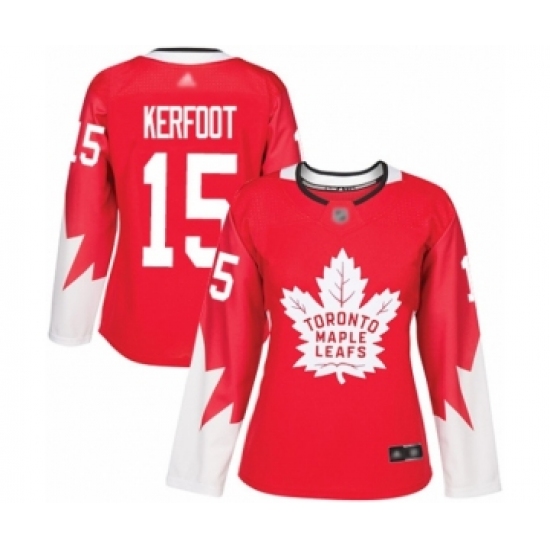 Women's Toronto Maple Leafs #15 Alexander Kerfoot Authentic Red Alternate Hockey Jersey