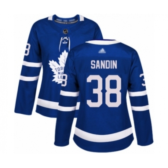 >Women's Toronto Maple Leafs #38 Rasmus Sandin Authentic Royal Blue Home Hockey Jersey