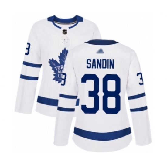 Women's Toronto Maple Leafs #38 Rasmus Sandin Authentic White Away Hockey Jersey