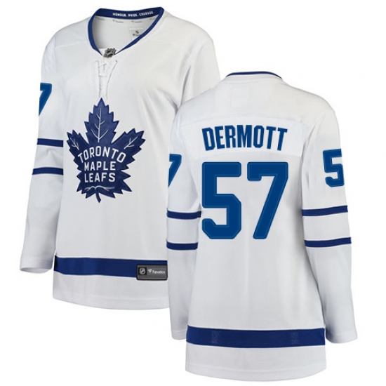 Home>NHL>Toronto Maple Leafs>Travis Dermott>Women's Toronto Maple Leafs #57 Travis Dermott Authentic White Away Fanatics Branded Breakaway NHL Jersey