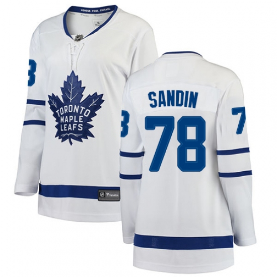 >Women's Toronto Maple Leafs #78 Rasmus Sandin Authentic White Away Fanatics Branded Breakaway NHL Jersey