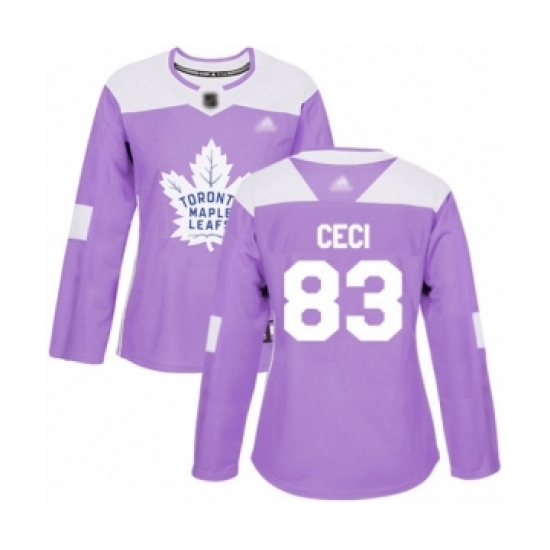 >Women's Toronto Maple Leafs #83 Cody Ceci Authentic Purple Fights Cancer Practice Hockey Jersey