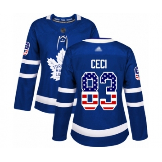 Women's Toronto Maple Leafs #83 Cody Ceci Authentic Royal Blue USA Flag Fashion Hockey Jersey