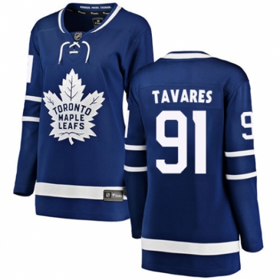 >Women's Toronto Maple Leafs #91 John Tavares Authentic Royal Blue Home Fanatics Branded Breakaway NHL Jersey