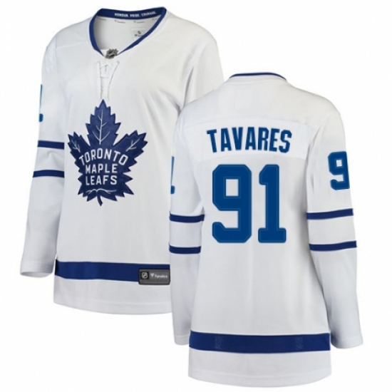 Women's Toronto Maple Leafs #91 John Tavares Authentic White Away Fanatics Branded Breakaway NHL Jersey