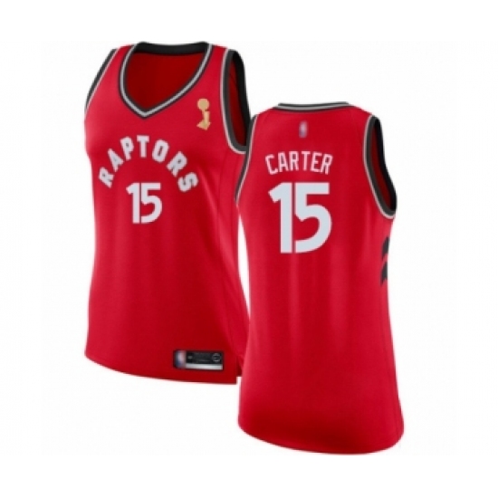 Women's Toronto Raptors #15 Vince Carter Swingman Red 2019 Basketball Finals Champions Jersey - Icon Edition