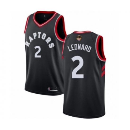 >Women's Toronto Raptors #2 Kawhi Leonard Swingman Black 2019 Basketball Finals Bound Jersey Statement Edition