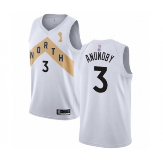 >Women's Toronto Raptors #3 OG Anunoby Swingman White 2019 Basketball Finals Champions Jersey - City Edition