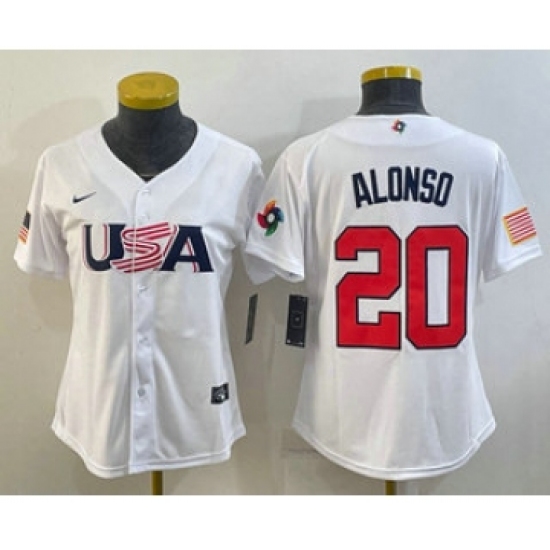 Women's USA Baseball #20 Pete Alonso 2023 White World Classic Stitched Jersey