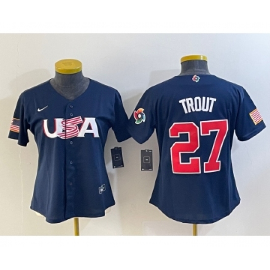 >Women's USA Baseball #27 Mike Trout 2023 Navy World Classic Stitched Jersey