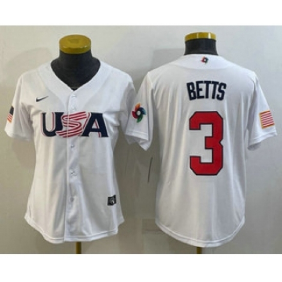 Women's USA Baseball #3 Mookie Betts 2023 White World Classic Replica Stitched Jersey