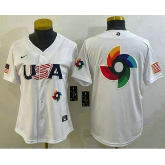 Women's USA Baseball Big Logo 2023 White World Baseball Classic Stitched Jerseys