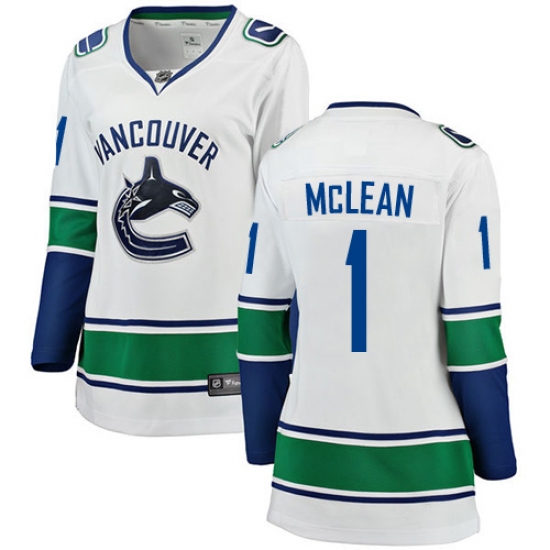 Home>NHL>Vancouver Canucks>Kirk Mclean>Women's Vancouver Canucks #1 Kirk Mclean Fanatics Branded White Away Breakaway NHL Jersey