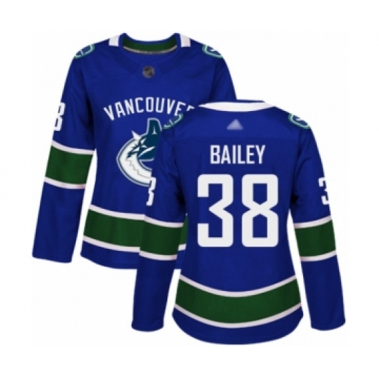 >Women's Vancouver Canucks #38 Justin Bailey Authentic Blue Home Hockey Jersey