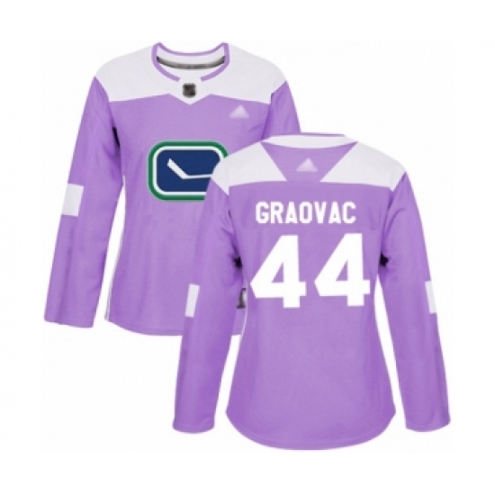 >Women's Vancouver Canucks #44 Tyler Graovac Authentic Purple Fights Cancer Practice Hockey Jersey