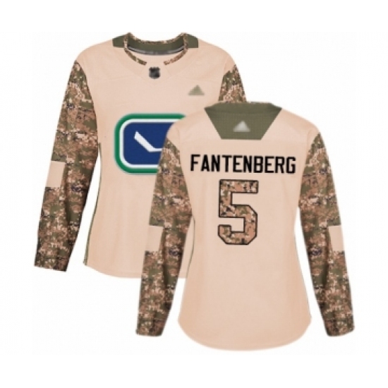 >Women's Vancouver Canucks #5 Oscar Fantenberg Authentic Camo Veterans Day Practice Hockey Jersey