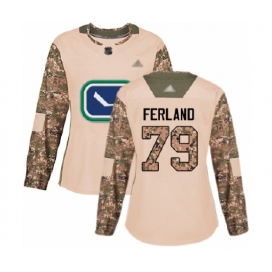 >Women's Vancouver Canucks #79 Michael Ferland Authentic Camo Veterans Day Practice Hockey Jersey