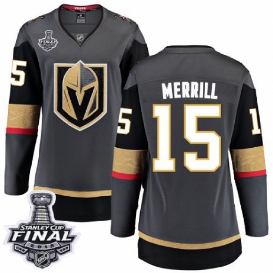 Women's Adidas Vegas Golden Knights #15 Jon Merrill Authentic Gray Home 2018 Stanley Cup Final NHL Jersey