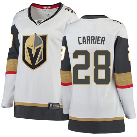 >Women's Vegas Golden Knights #28 William Carrier Authentic White Away Fanatics Branded Breakaway NHL Jersey