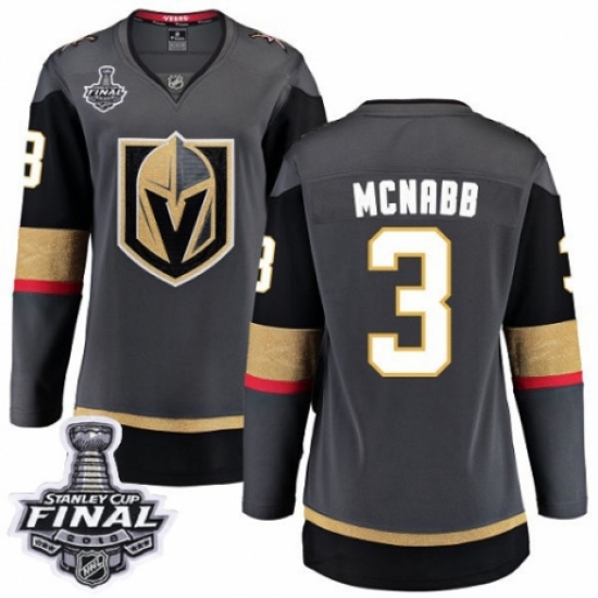 >Women's Vegas Golden Knights #3 Brayden McNabb Authentic Black Home Fanatics Branded Breakaway 2018 Stanley Cup Final NHL Jersey