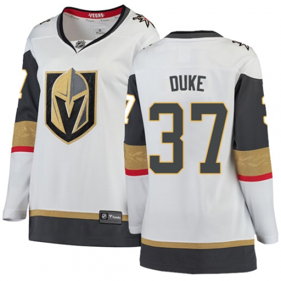 >Women's Vegas Golden Knights #37 Reid Duke Authentic White Away Fanatics Branded Breakaway NHL Jersey